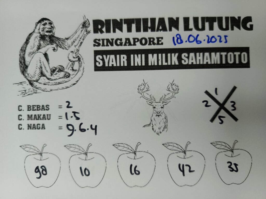 Syair RINTIHAN LUTUNG SINGAPORE Pools Hari ini Rabu 18 Juni 2025