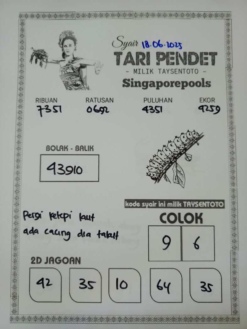 Syair Tari Pendet SGP Hari ini Rabu, 18 Juni 2025