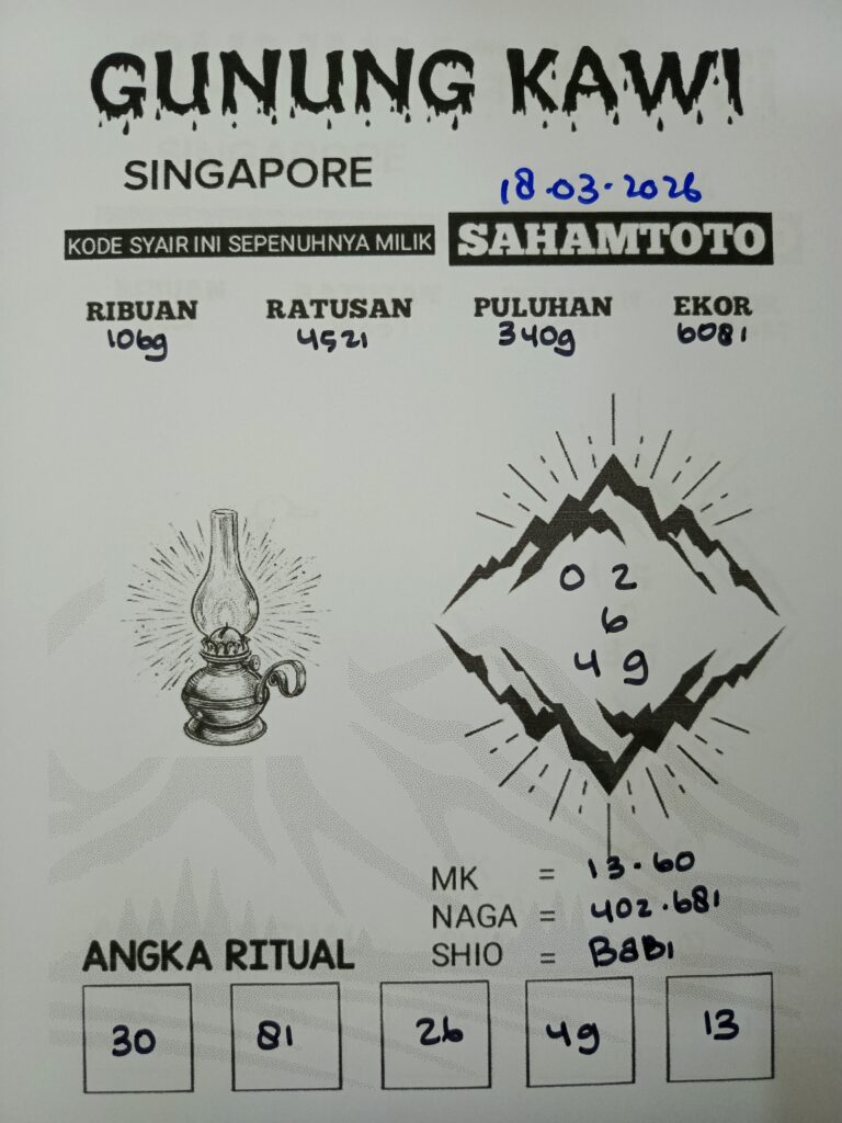 Syair Gunung Kawi Singapore Pools Hari ini Senin 16 Maret 2026