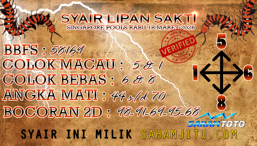 Syair lipan sakti Singapore Pools Hari ini Senin 16 Maret 2026