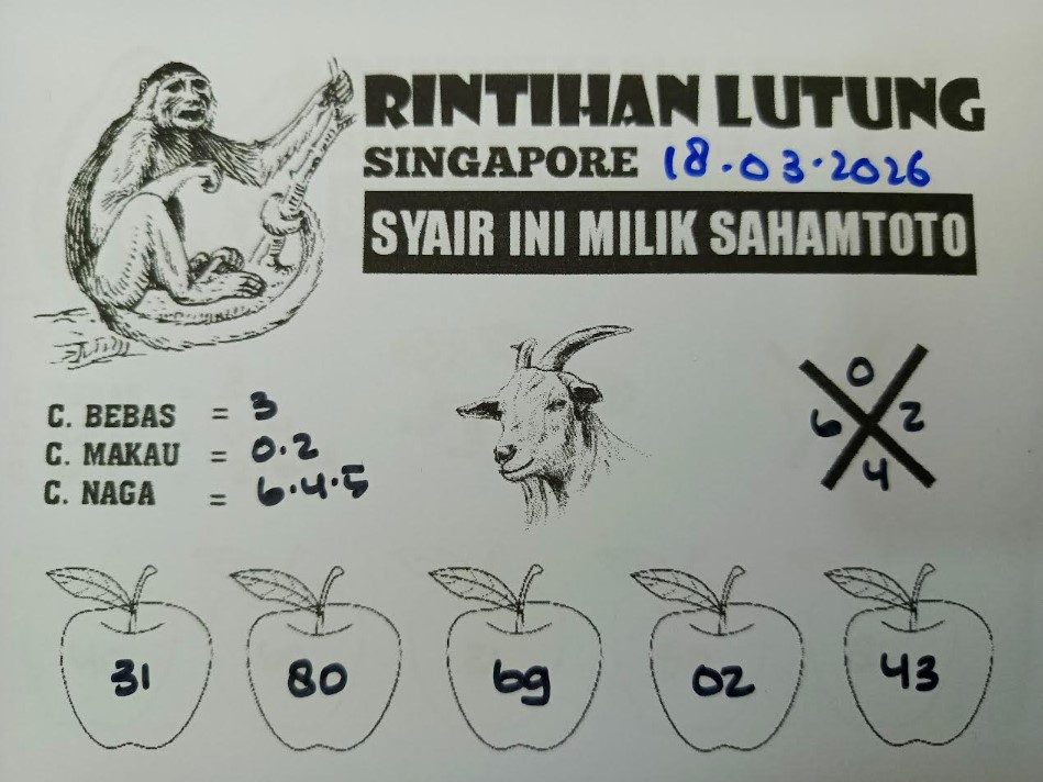 Syair Rintihan Lutung Singapore Pools Hari ini Senin 16 Maret 2026