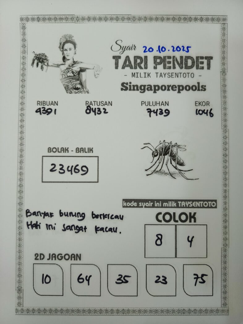 Syair Tari Pendet SGP Hari ini Senin, 20 Oktober 2025