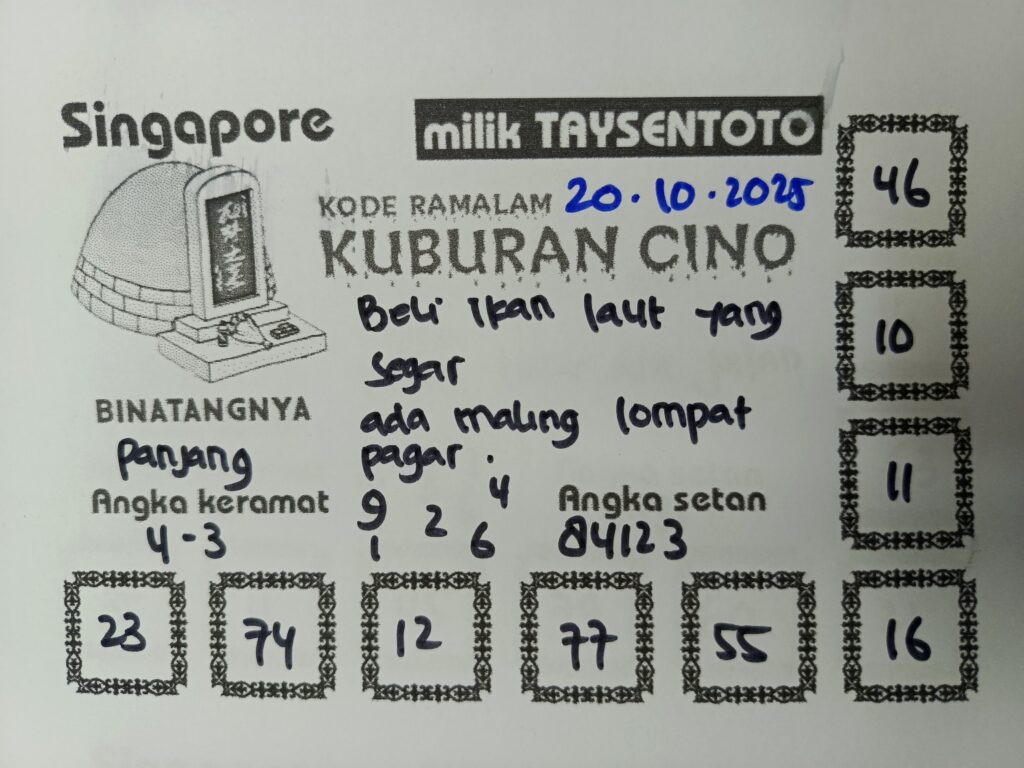 Syair Kuburan Cino SGP Hari ini Senin, 20 Oktober 2025