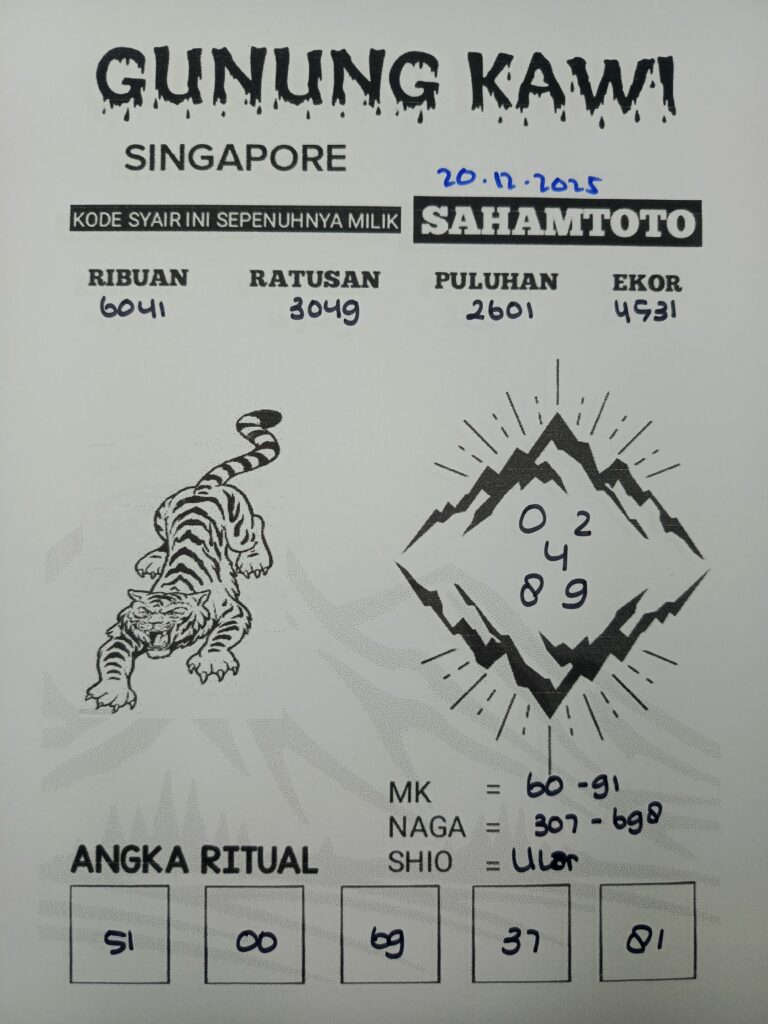 Syair Gunung Kawi Singapore Pools Hari ini 20 Desember 2025