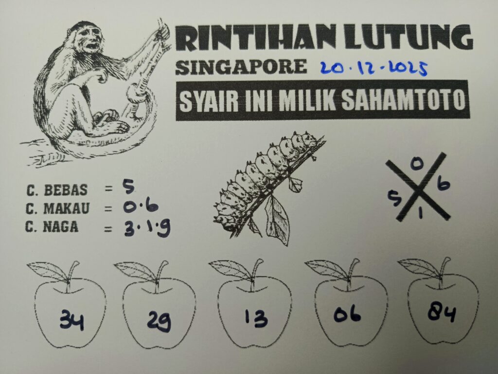 Syair Rintihan Lutung Singapore Pools Hari ini 20 Desember 2025