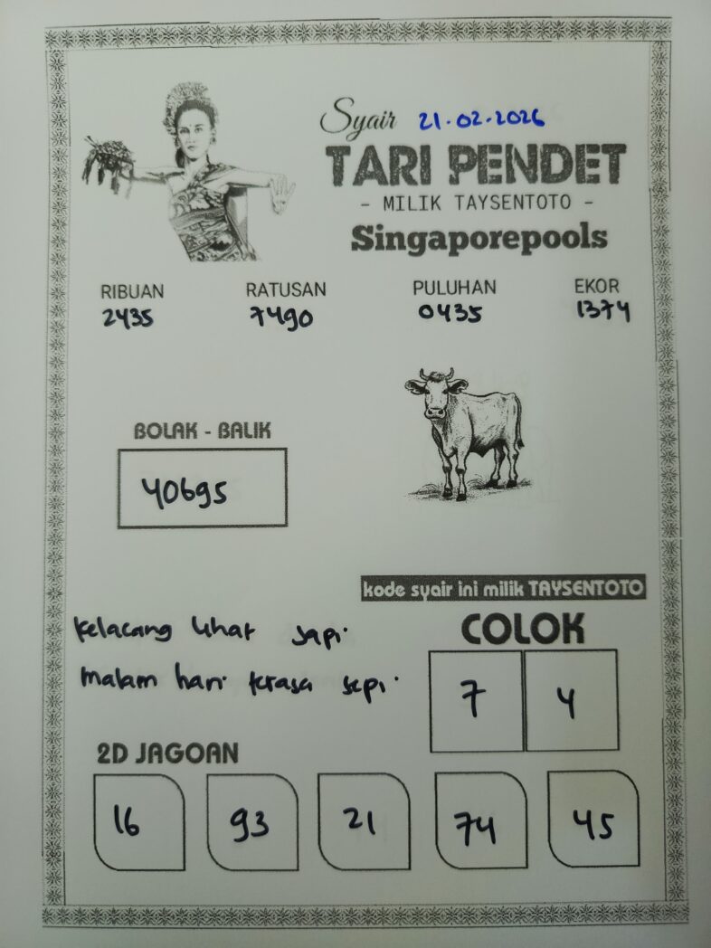 Syair Tari Pendet SGP Hari ini Sabtu, 21 Februari 2026