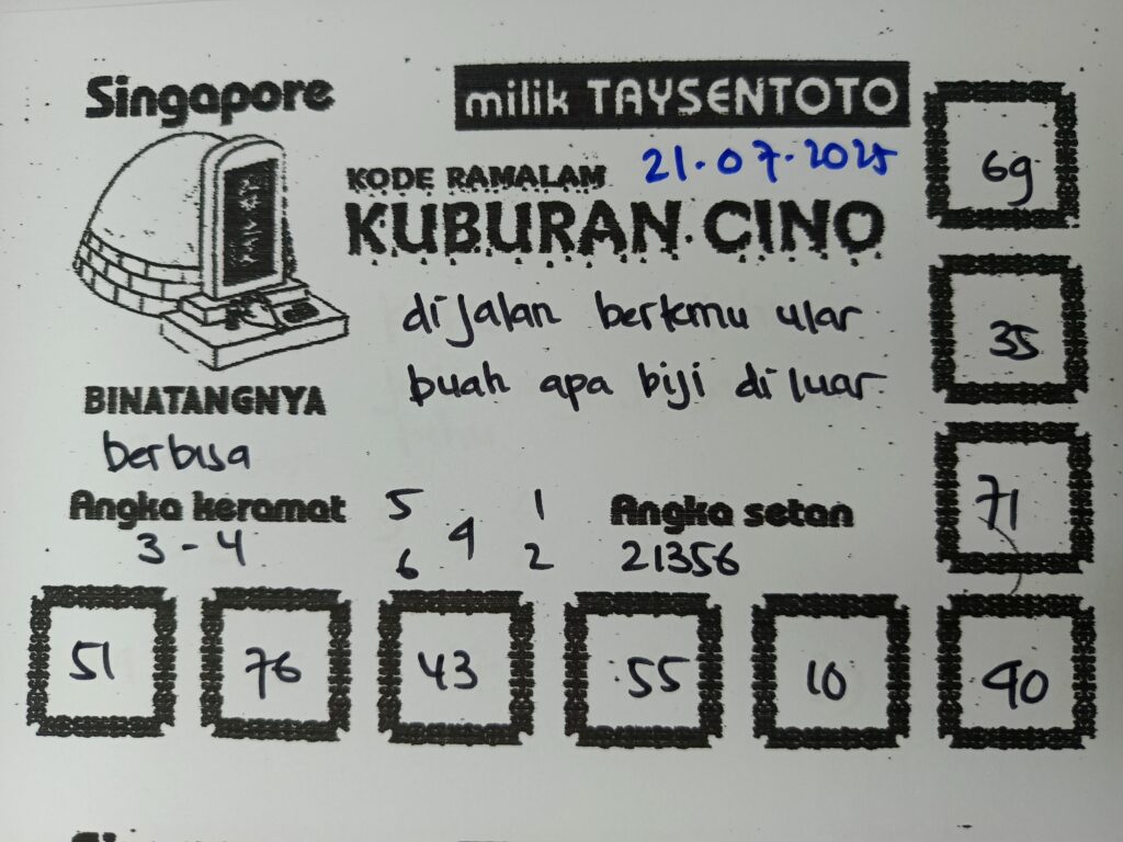 Syair Kuburan Cino SGP Hari ini Senin, 21 Juli 2025