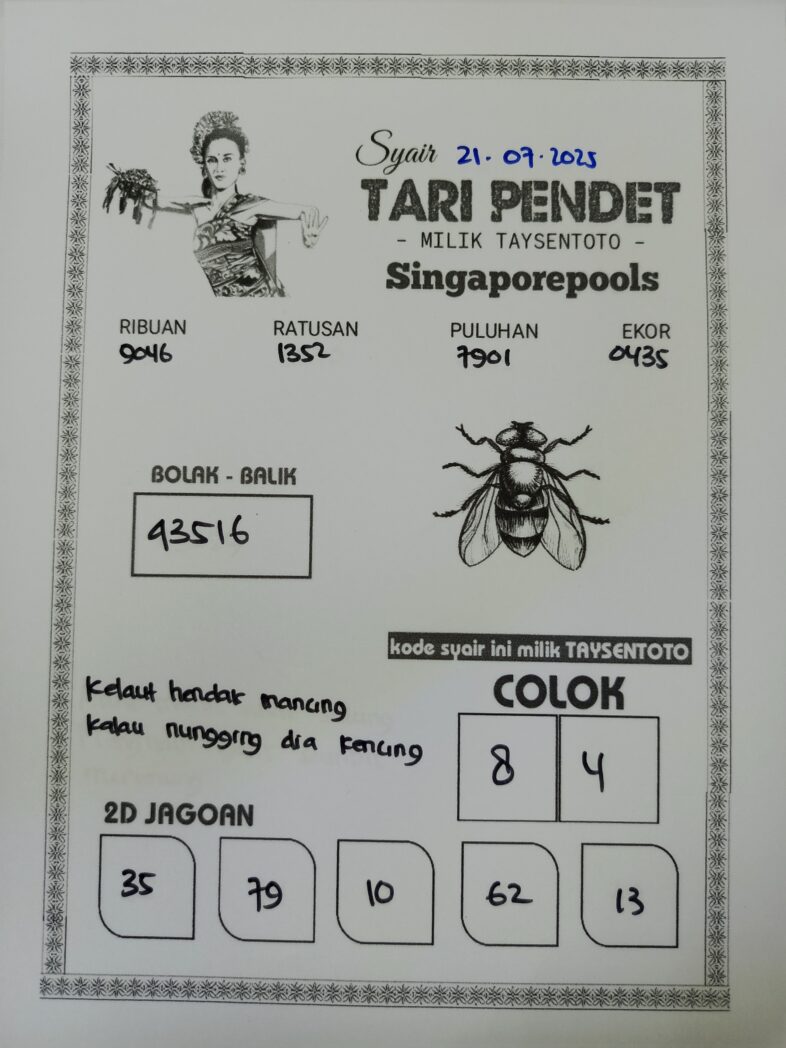 Syair Tari Pendet SGP Hari ini Senin, 21 Juli 2025