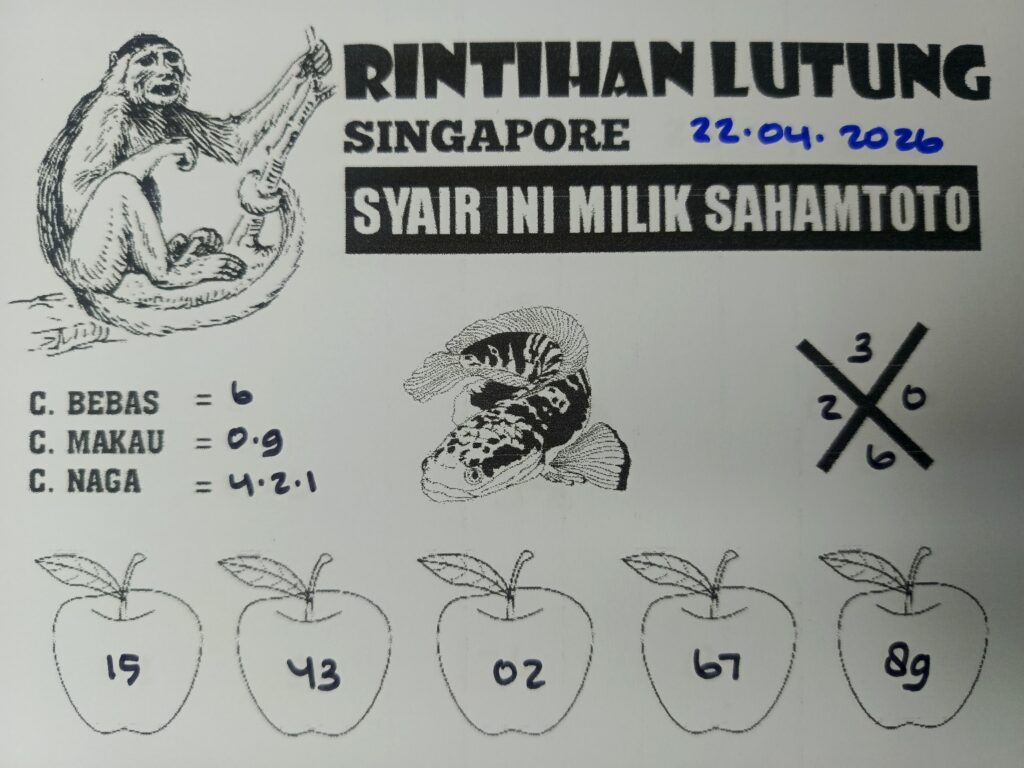 Syair Rintihan Lutung SINGAPORE POOLS Hari ini rabu, 22 April 2026