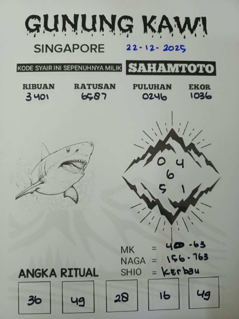 Syair Gunung Kawi Singapore Pools Hari ini 22 Desember 2025