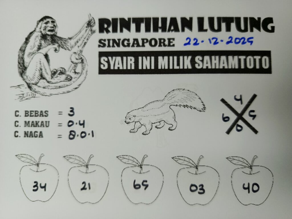 Syair Rintihan Lutung Singapore Pools Hari ini 22 Desember 2025