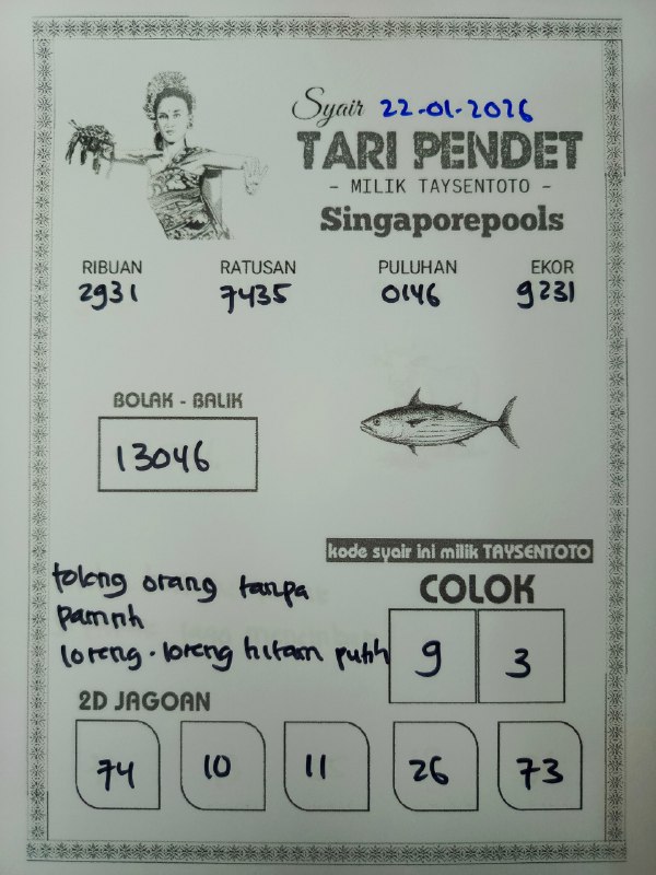 Syair Tari Pendet SGP Hari ini Kamis, 22 Januari 2026