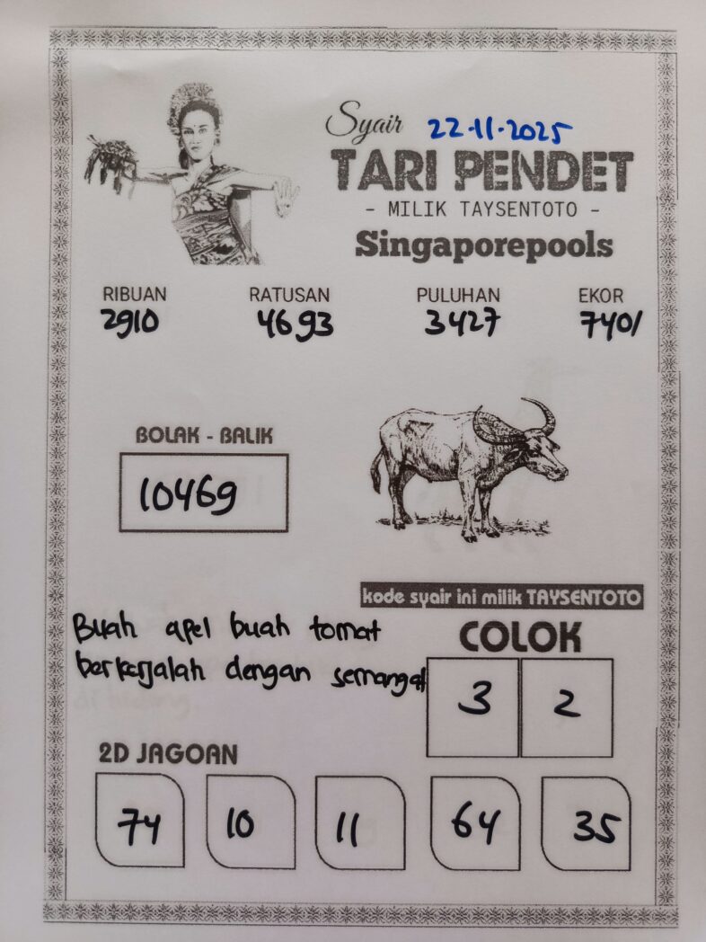 Syair Tari Pendet SGP Hari ini Sabtu, 22 November 2025