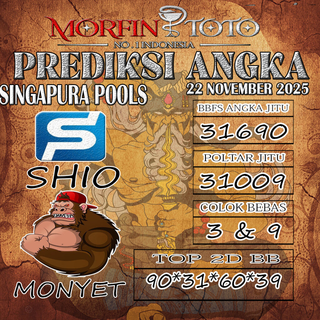 Syair Rintihan Lutung Singapore Pools Hari ini Sabtu 22 November 2025