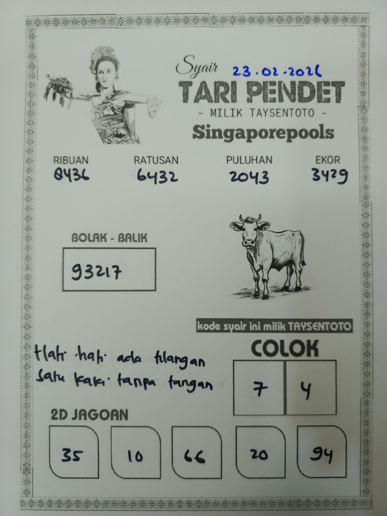 Syair Tari Pendet SGP Hari ini Senin, 23 Februari 2026