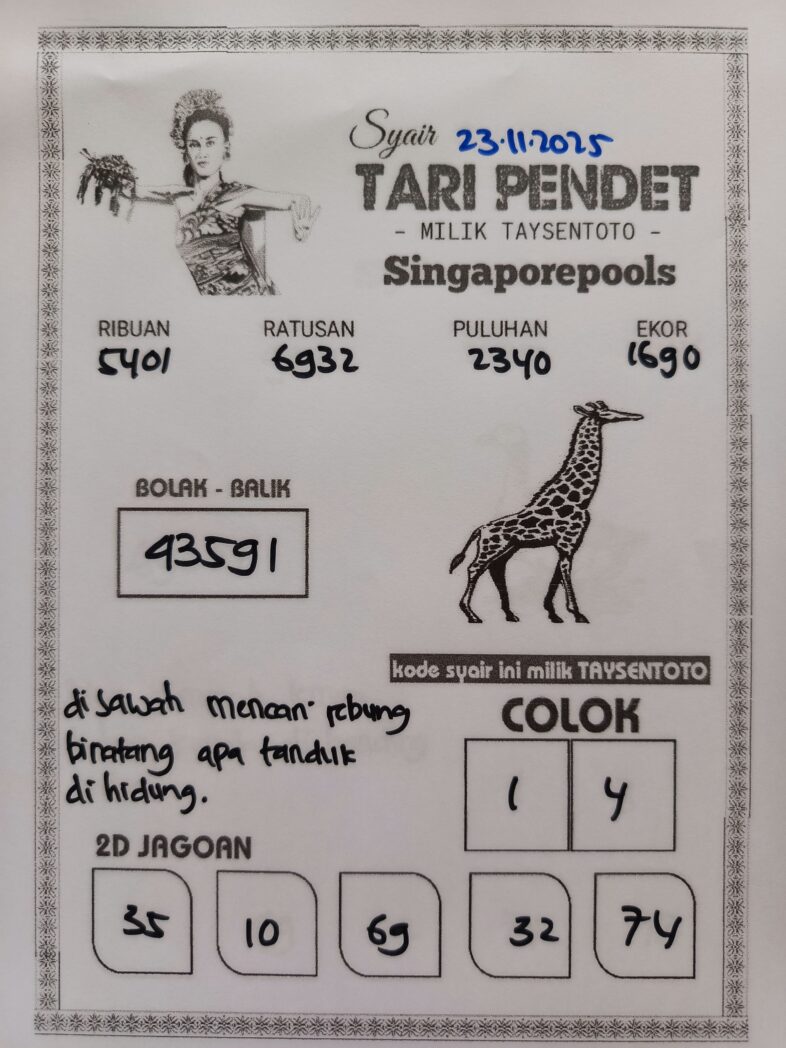 Syair Tari Pendet SGP Hari ini Minggu, 23 November 2025
