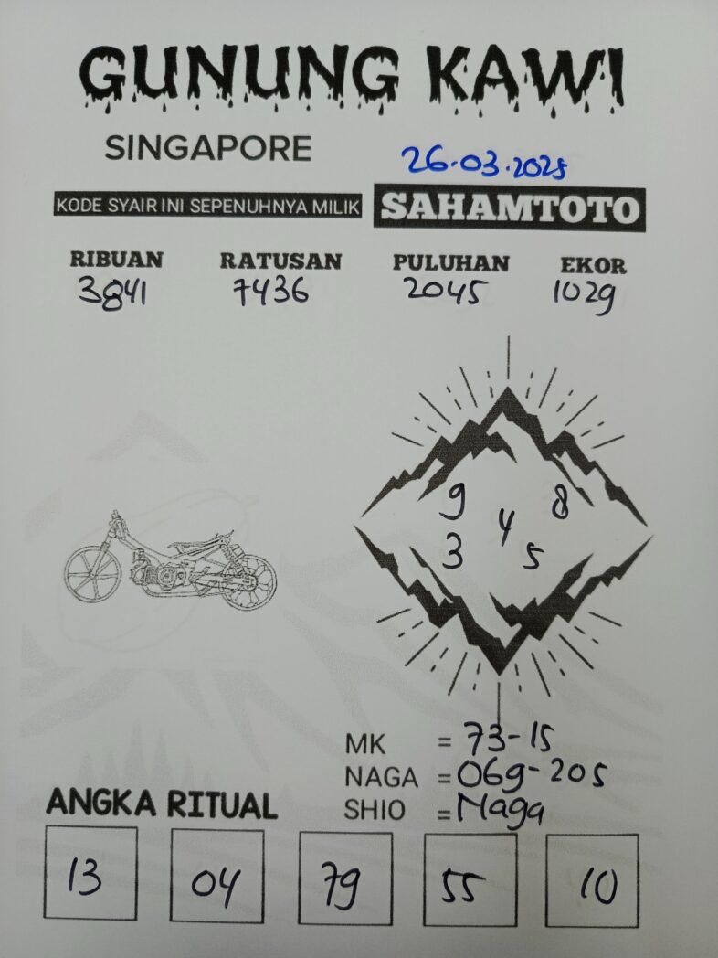 Syair Gunung kawi Singapore Pools Rabu 26 Maret 2025