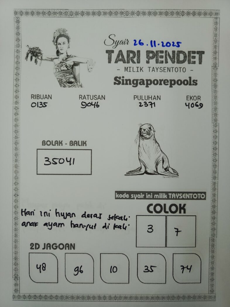 Syair Tari Pendet SGP Hari ini Rabu, 26 November 2025