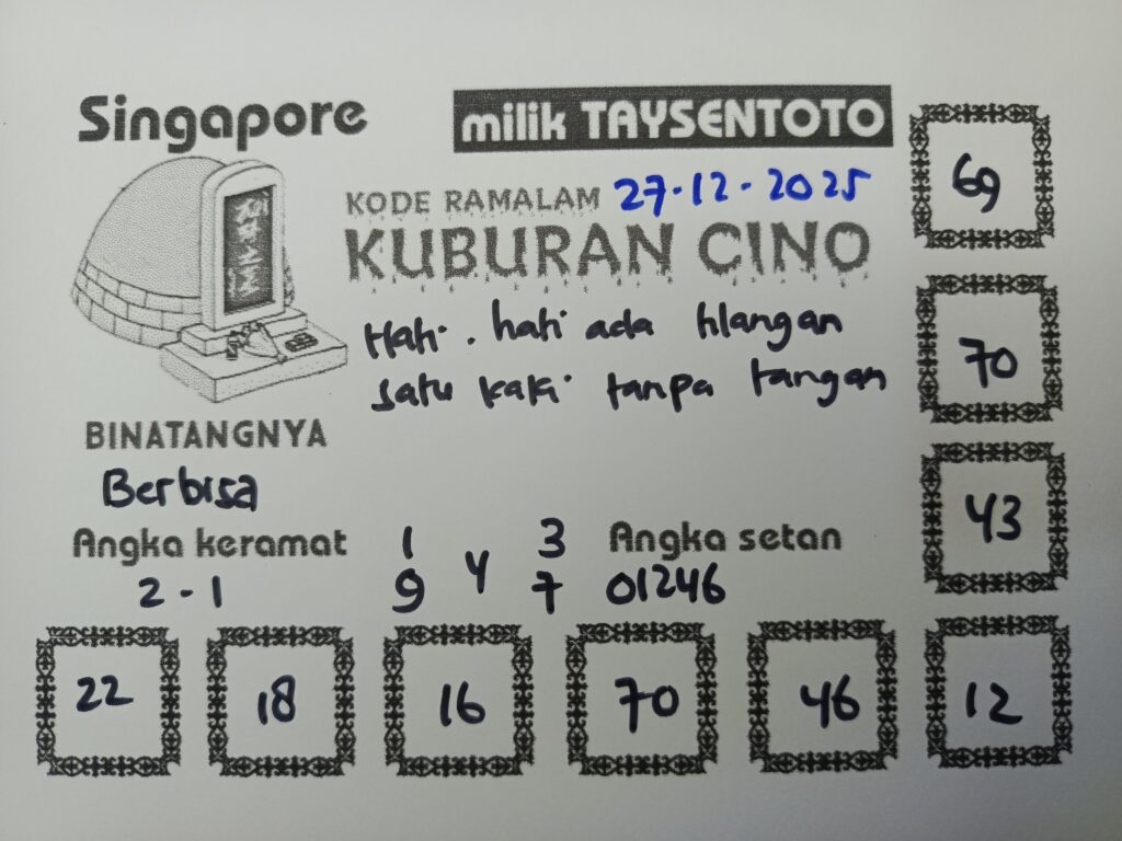 Syair Kuburan Cino SGP Hari ini Jumat, 27 Desember 2025
