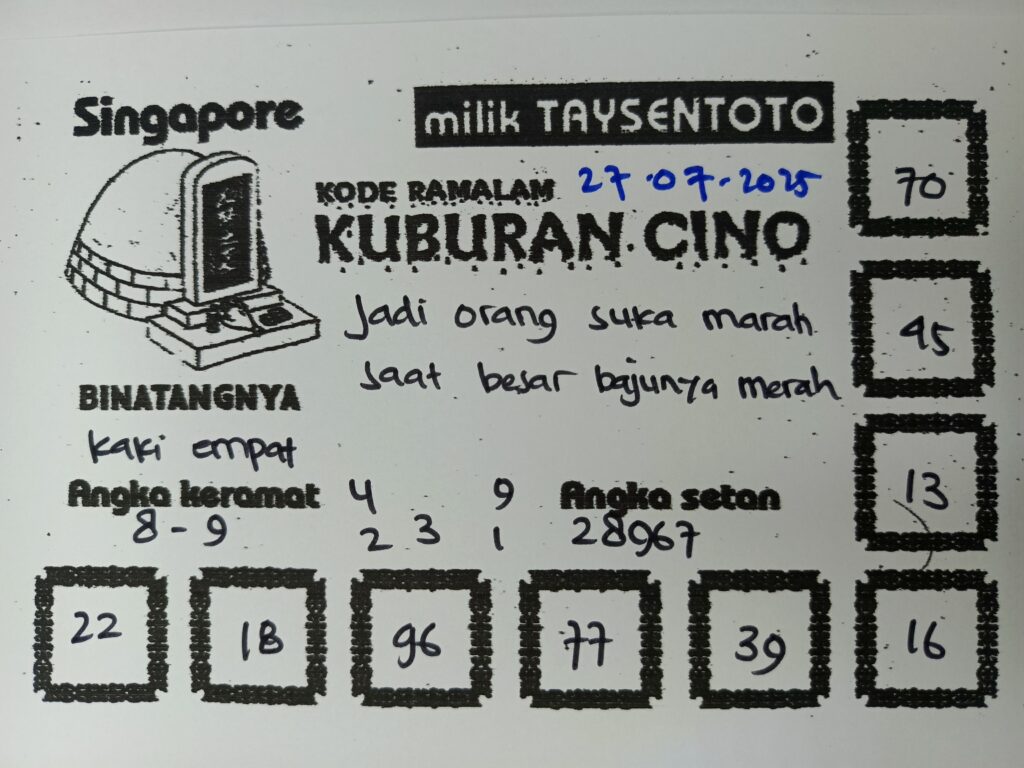 Syair Kuburan Cino SGP Hari ini Minggu, 27 Juli 2025
