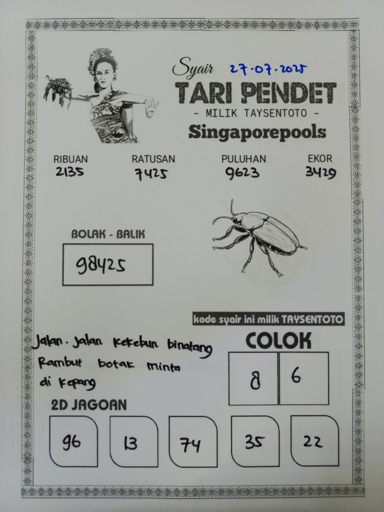Syair Tari Pendet SGP Hari ini Minggu, 27 Juli 2025
