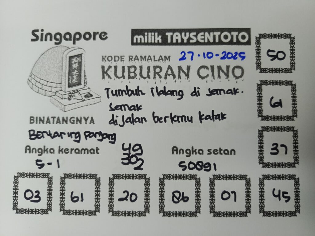 Syair Kuburan Cino SGP Hari ini Senin, 27 Oktober 2025
