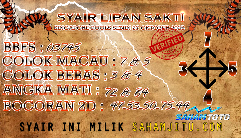 Syair Lipan Sakti Singapore Pools Hari ini Senin, 27 Oktober 2025