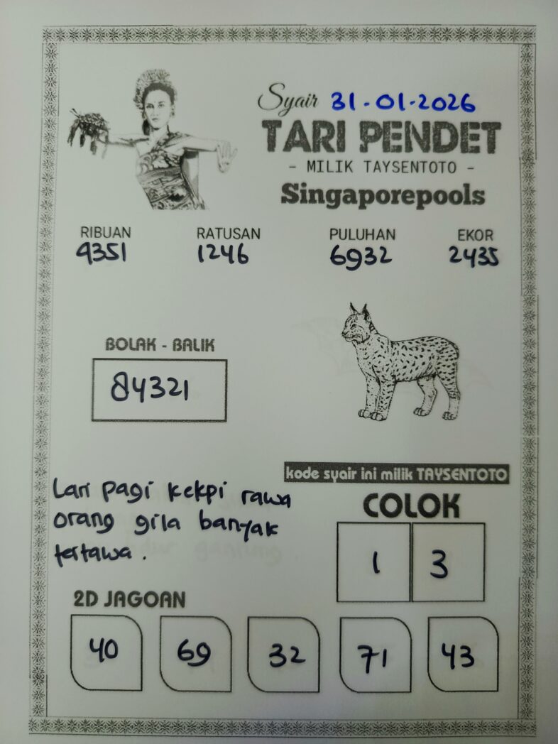 Syair Tari Pendet SGP Hari ini Sabtu, 31 Januari 2026