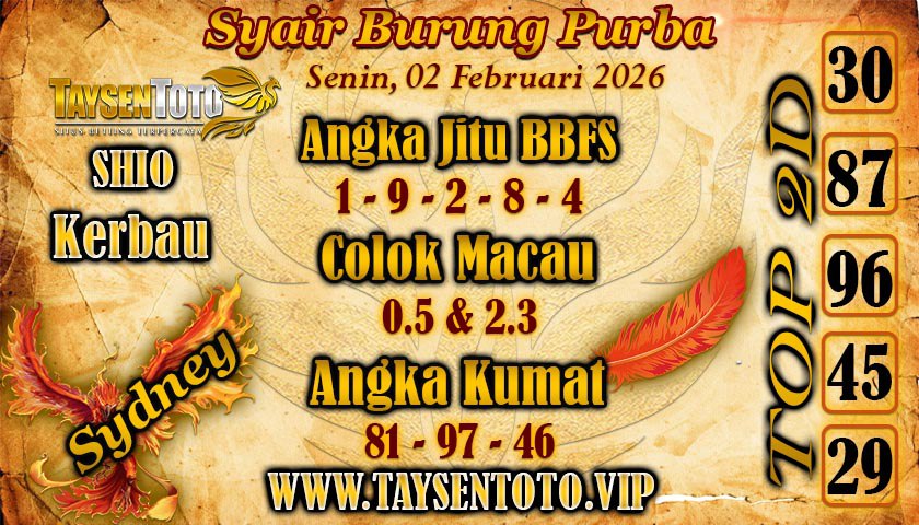 Syair Burung Purba Sydney Hari ini Senin, 02 Februari 2026