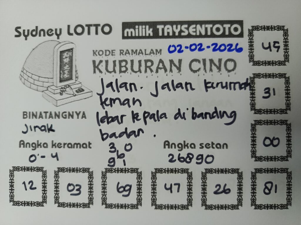 Syair Kuburan Cino Sydney Hari ini Senin, 02 Februari 2026