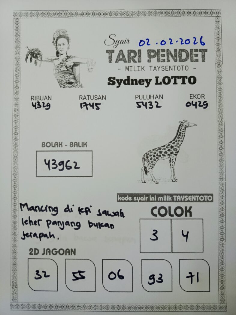 Syair Tari Pendet Sydney Hari ini Senin, 02 Februari 2026
