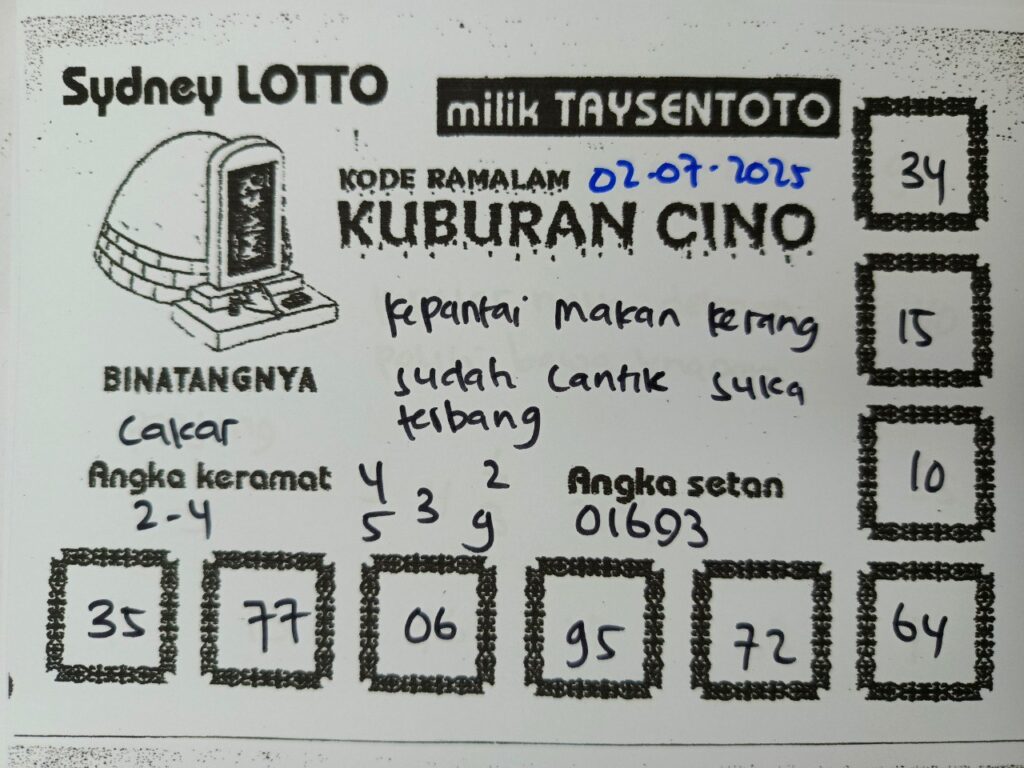 Syair Kuburan Cino Sydney Hari ini Rabu, 02 Juli 2025