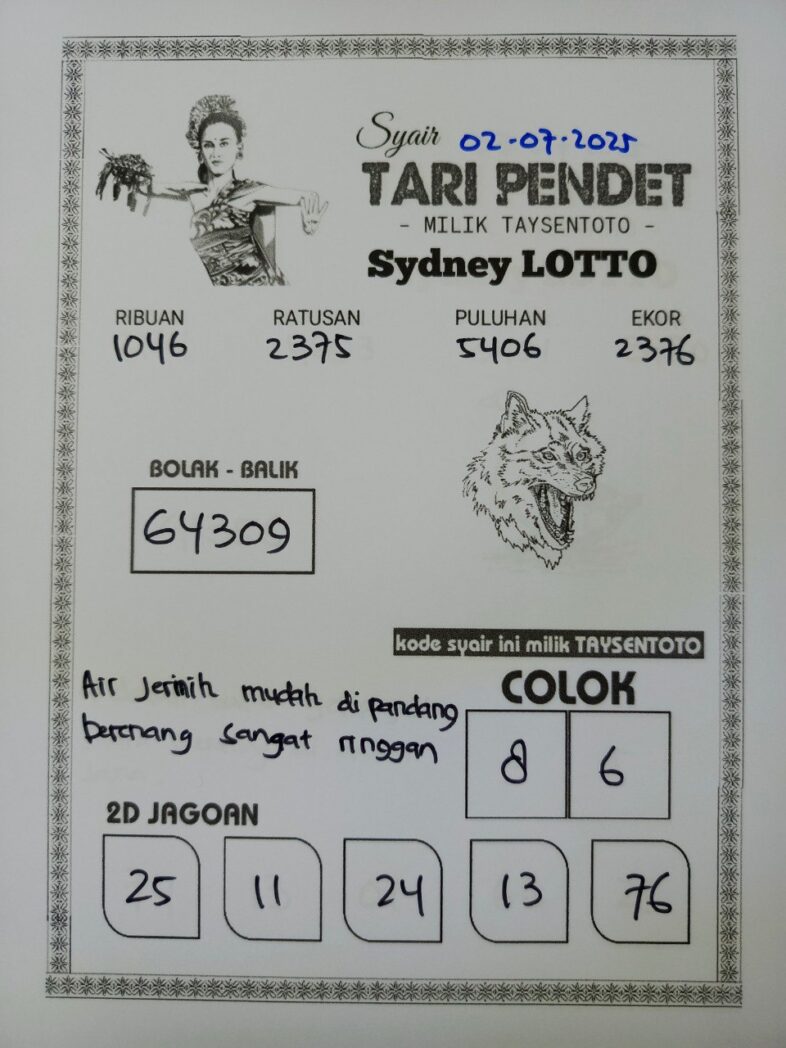 Syair Tari Pendet Sydney Hari ini Rabu, 02 Juli 2025
