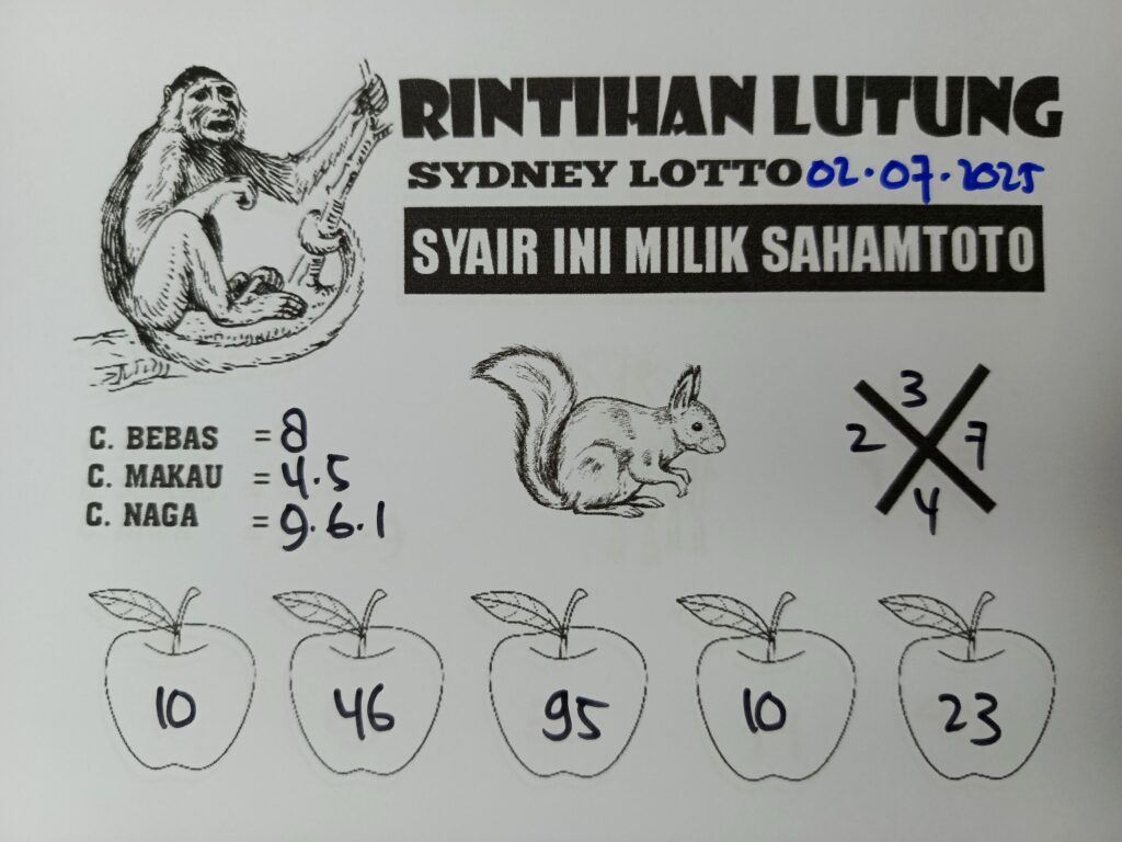 Syair Rintihan Lutung Sydney lotto Hari ini Rabu 02 Juli 2025