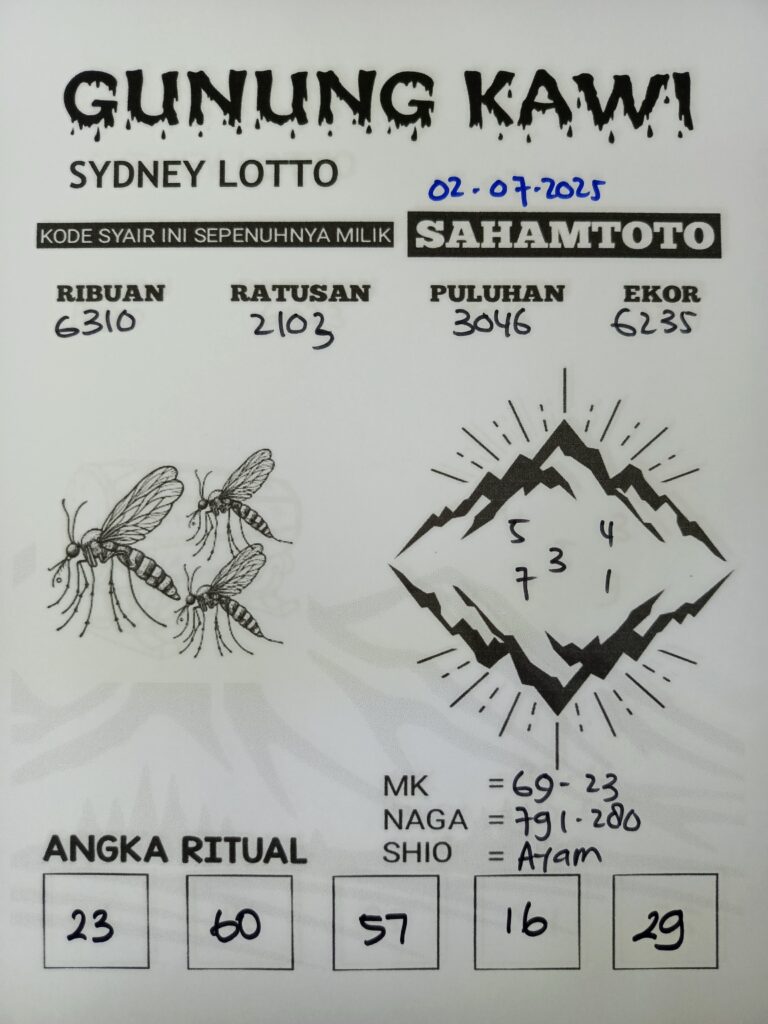 Syair Gunung Kawi Sydney lotto Hari ini Rabu 02 Juli 2025