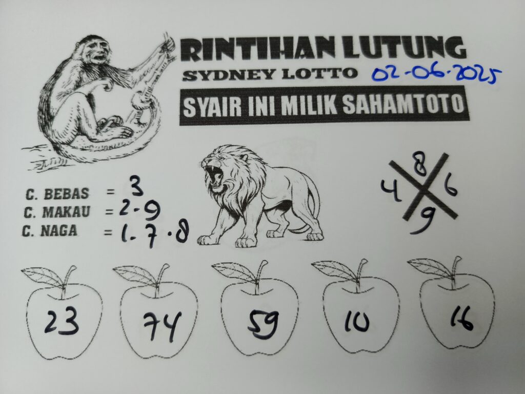 Syair Rintihan Lutung Sydney lotto Pools Hari ini Senin 02 Juni 2025