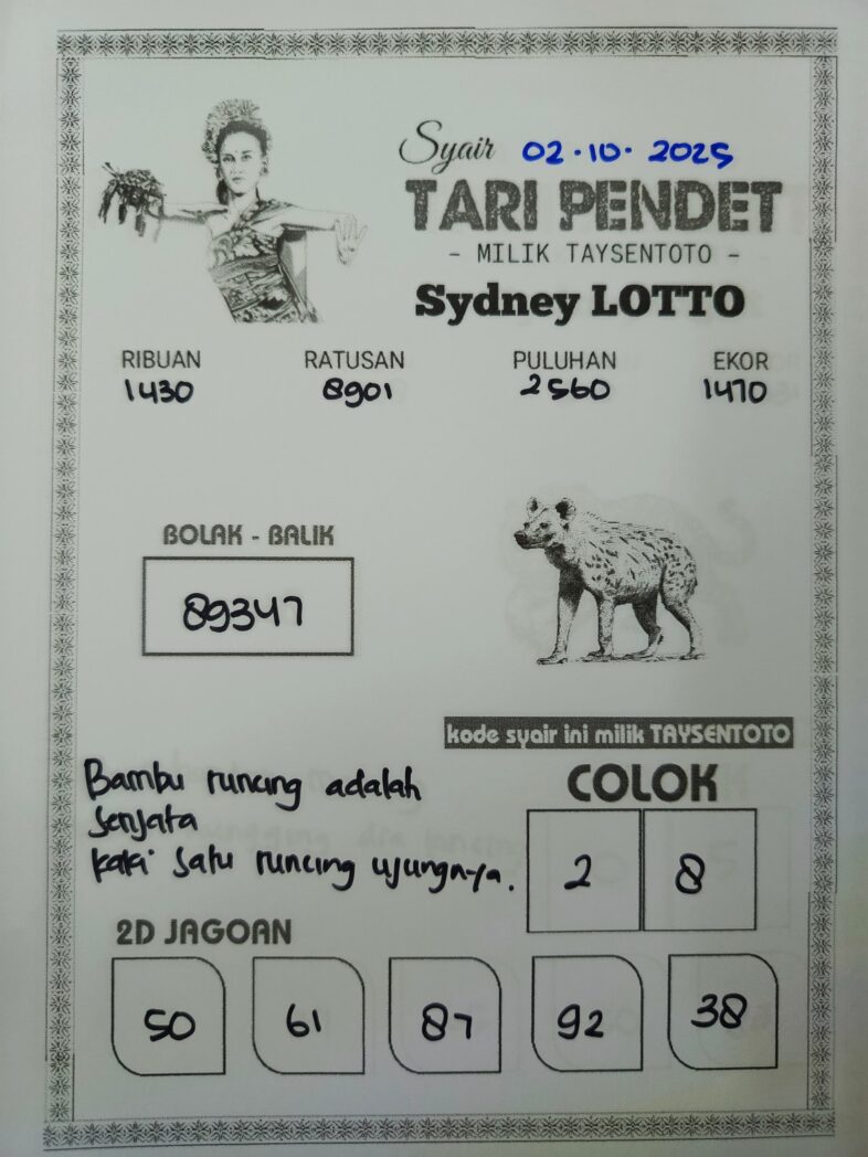 Syair Tari Pendet Sydney Hari ini Minggu, 02 November 2025