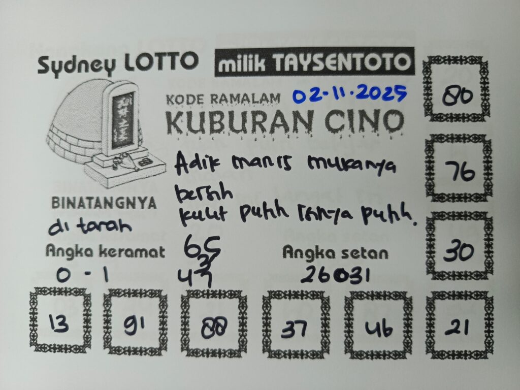 Syair Kuburan Cino Sydney Hari ini Minggu, 02 November 2025