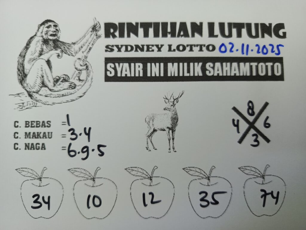 Syair Rintihan Lutung Sydney Lotto Hari ini Minggu 02 November 2025