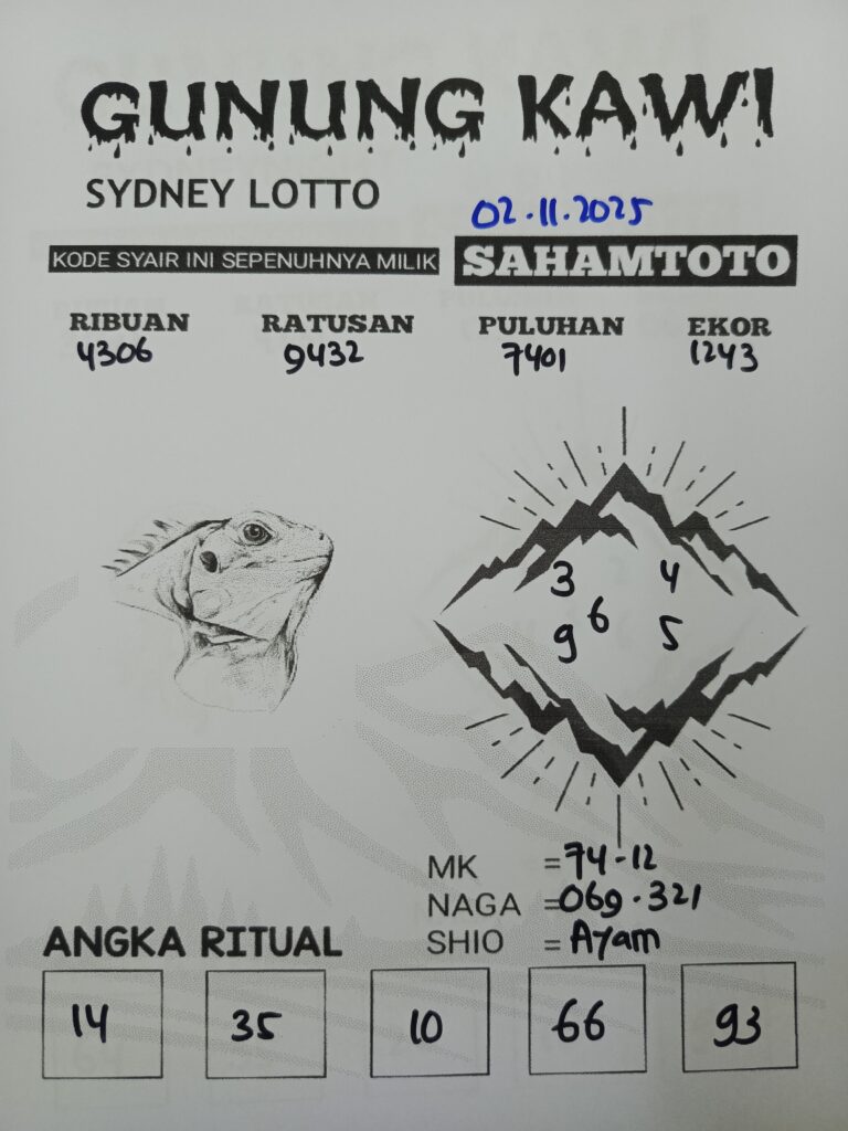 Syair Gunung Kawi Sydney Lotto Hari ini Minggu 02 November 2025