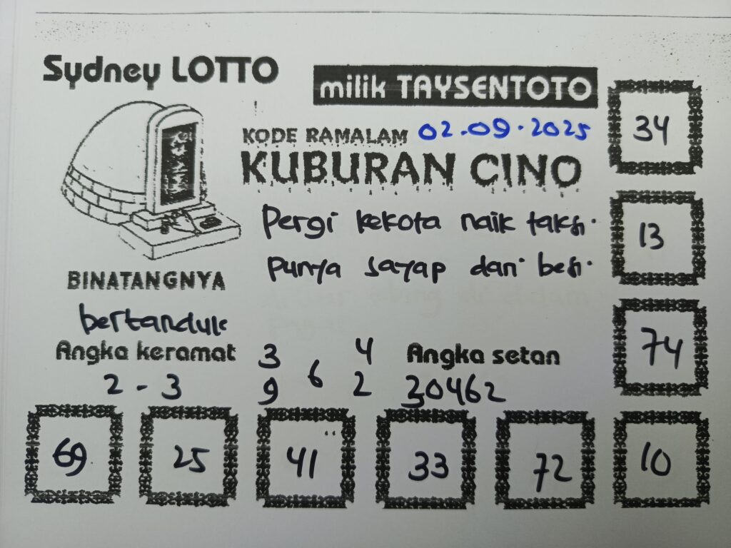 Syair Kuburan Cino Sydney Hari ini Selasa, 02 September 2025