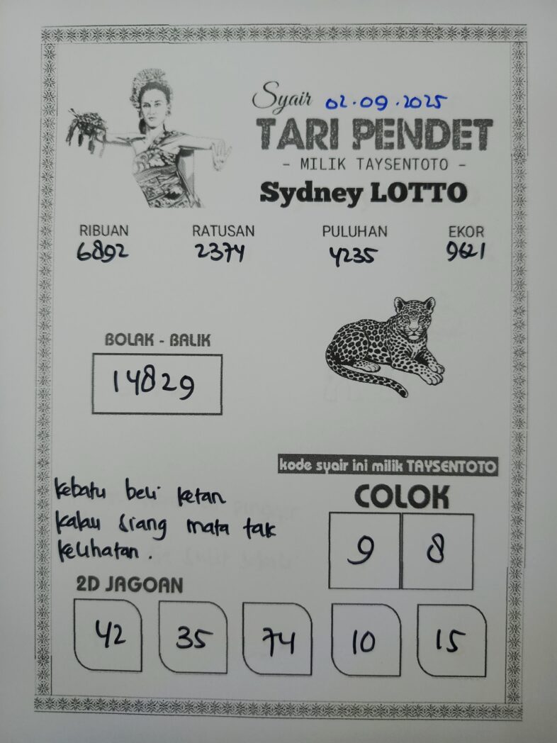Syair Tari Pendet Sydney Hari ini Selasa, 02 September 2025