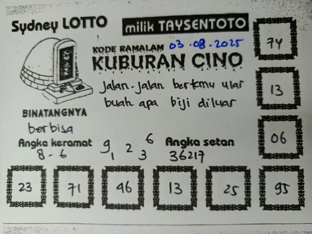 Syair Kuburan Cino Sydney Hari ini Minggu, 03 Agustus 2025