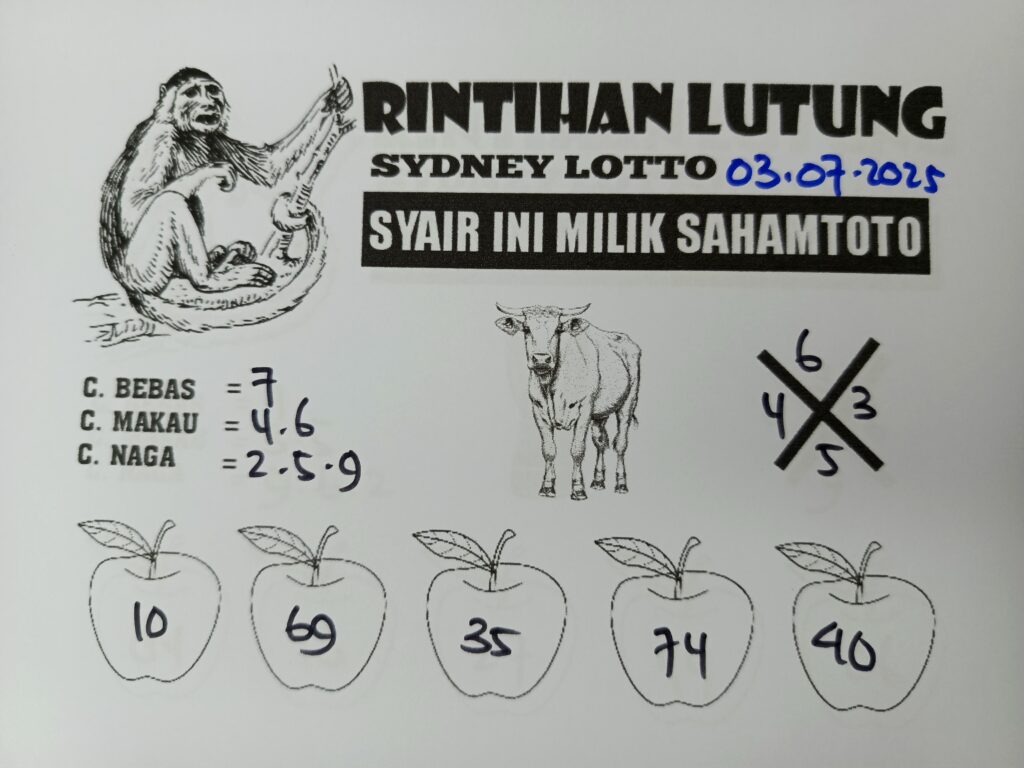 Syair Rintihan Lutung Sydney lotto Hari ini Kamis 03 Juli 2025