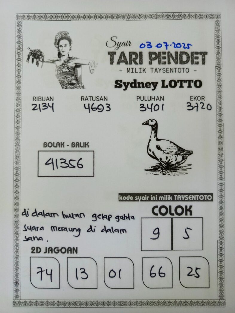 Syair Tari Pendet Sydney Hari ini Kamis, 03 Juli 2025