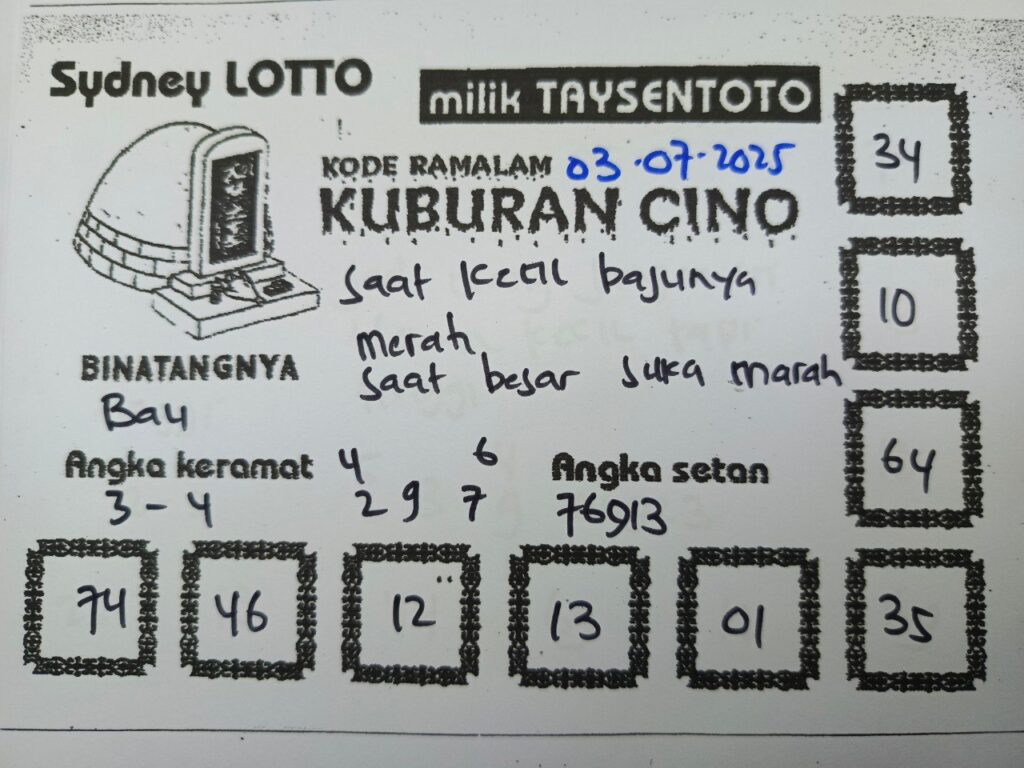 Syair Kuburan Cino Sydney Hari ini Kamis, 03 Juli 2025