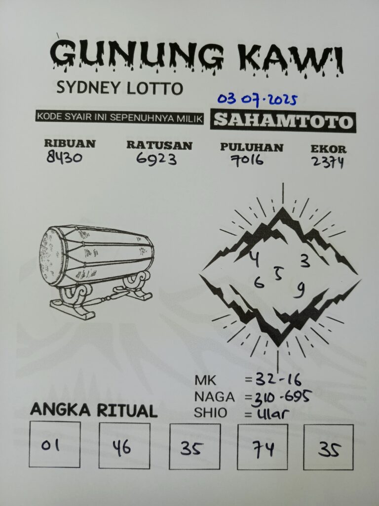 Syair Gunung Kawi Sydney lotto Hari ini Kamis 03 Juli 2025
