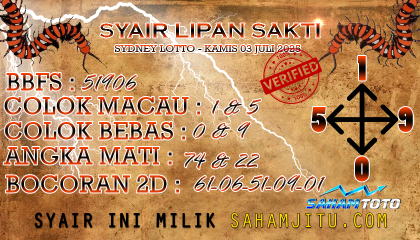 Syair Lipan Sakti Sydney lotto Hari ini Kamis 03 Juli 2025