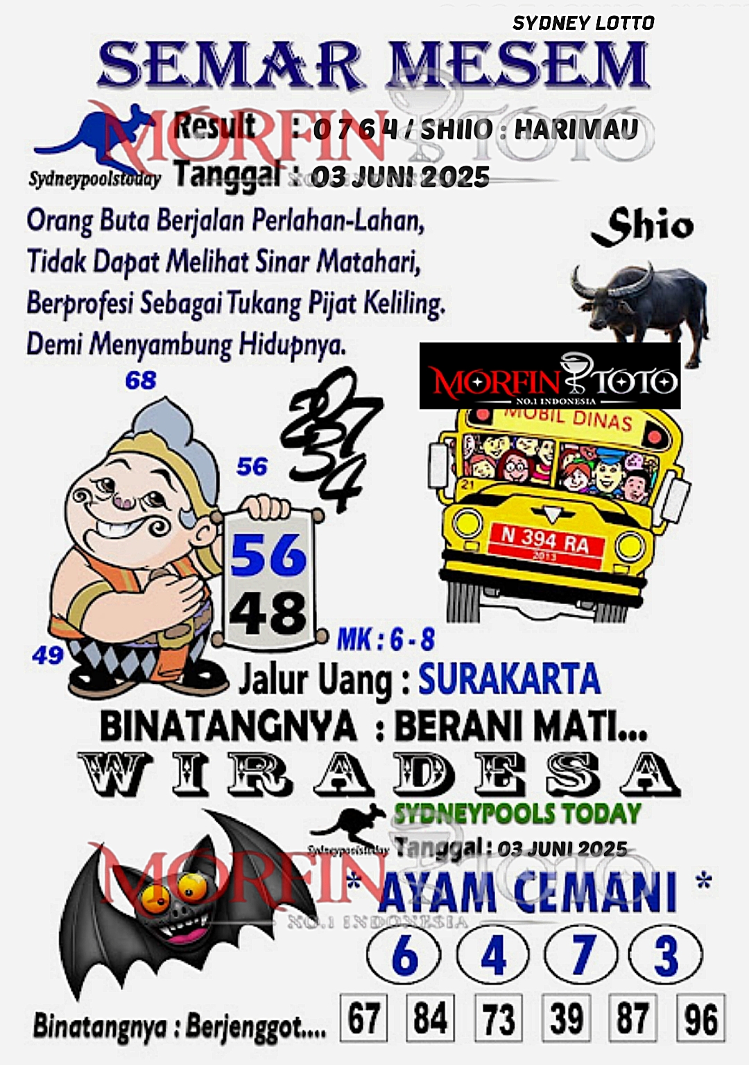 SYAIR TOGEL SEMAR MESEM  SYDNEY LOTTO  03 JUNI 2025