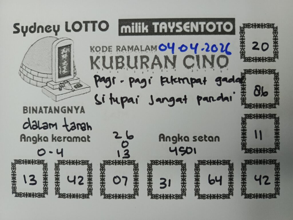 Syair Kuburan Cino Sydney Hari ini Sabtu, 04 April 2026